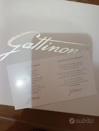 Vendo decanter della Gattinoni mai usato e originale completo di certificato di origine. Logo e scritte sui toni del grigio e oro. Vendibile anche con i due calici della stessa linea entrambi al prezzo di 40 euro.