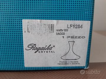 Decanter pregiato di cristallo per vino, modello Bacco 1800 marca Rogaska avente capacità 1,8 litri. Nuovo in confezione originale come da foto. Richiesta euro 50