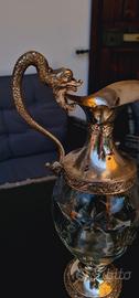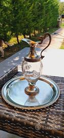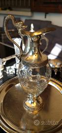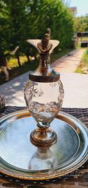Caraffa Vintage di cristallo e argento marcato DISTILLERIE BUTON DI BOLOGNA. MOLTO ELEGANTE. Visto che è un oggetto Vintage porta segni di usura. Anche il tapino in sughero è rotto la metà. Se si vuole può essere cambiato. Nonostante tutto è un oggetto molto bello che non è mai stato usato ,solo per bellezza come sopra mobile.