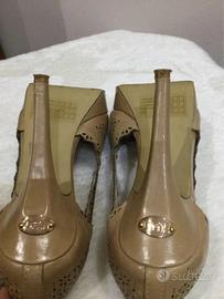 Bellissime décolleté in vera pelle color biscotto. Tacchi alti con plateau. Punta aperta. Perfette anche x occasioni speciali. In ottime condizioni, piccolo segno sul tacco. Indossate poco. Sacchetto e scatola originali. N.36. LIU JO