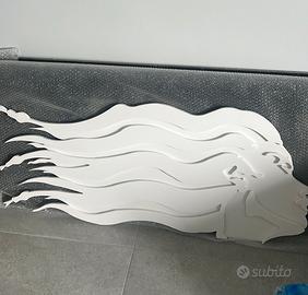 Elegante decorazione da parete dal design moderno e raffinato, raffigurante il profilo di una donna con i capelli mossi dal vento. Realizzata in cliom (materiale resistente, leggero e di alta qualità), presenta un bellissimo effetto tridimensionale che dona movimento e profondità alla parete.