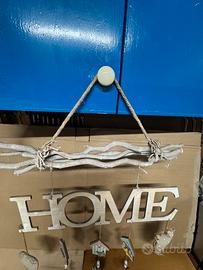 Vendo decorazione da muro in legno naturale, scritta e gadget vari e scritta “HOME”come nuova, in perfette condizioni. Ottimo come idea regalo. Misure: larghezza cm. 53 - altezza cm. 70 - profondità cm. 5. Preferibile ritiro o consegna diretta. Eventuali spese di spedizione a carico dell’acquirente. No perditempo.