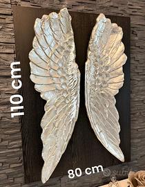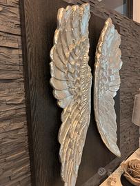 Grande decorazione da parete composta da una coppia di ali in argento, 110 x 80 x 15 cm (H/W/D)