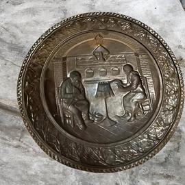 Bellissimo piatto ornamentale in rame lavorato a sbalzo, perfetto per amanti del genere rustico, country o per arredare una cucina in stile classico/retro.