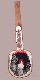 Dalla serie NEW VINTAGE. Oggetti d'arredo. Pala antica in legno. Dipinta a mano con fissaggio. Dipinta a mano dall'artista. Il gallo canta: la notte se ne andrà, il sole sorgerà! In due lingue. Dimensioni: 82 cm di lunghezza, pala 28 x 25 cm.