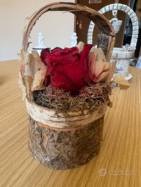 - Il cestino in corteccia di betulla conferisce un aspetto rustico e affascinante
