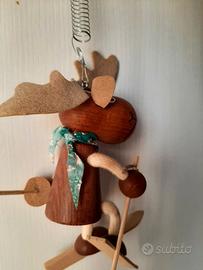 Deliziosa decorazione in legno raffigurante un alce che scia, dotata di molla per essere appesa. Un pezzo simpatico e originale, perfetto per creare un’atmosfera giocosa durante il periodo natalizio, ma ideale anche per decorare la cameretta di un bambino o un angolo creativo della casa.