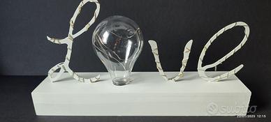 Scritta decorativa luminosa "Love". La lettera "O" è una lampadina.