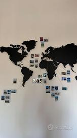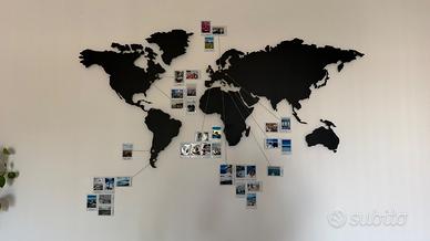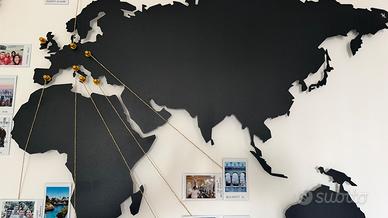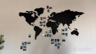 Mappa grande del mondo in metallo magnetico. Incluso anche il foglio per prendere le misure sul muro e fare i buchi per attaccare la decorazione. Vendo senza calamite oro e senza spago