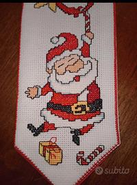 Fatto a mano con decorazione punto croce e fiocco e parte inferiore in gomma eva rossa, con campanella funzionante.