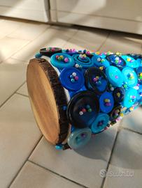 ...Completamente rivestito da bottoni sfumati sul blu e spilli.