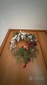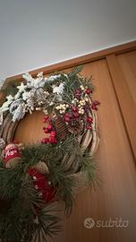 Vendo decorazione natalizia da porta, con rami intrecciati, pigne e aghi di pino veri. Diametro 50cm