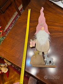 Graziosissimo gnomo di Natale in legno, perfetto come decorazione da mettere sotto l’albero, vicino al presepe o all’ingresso di casa.