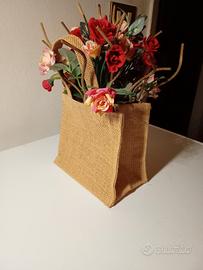 sacchetto rigido di juta,rose finte e bastoncini di legno. ritiro a brusegana PD possibile spedizione