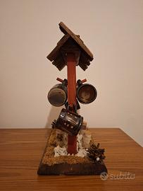 Bellissima decorazione artigianale in legno stile rustico, a forma di pozzo, con 6 tazze in ceramica appese.