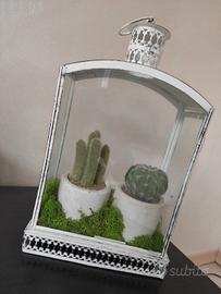 decorazione shabby chic. in alluminio e vetro con piantine finte