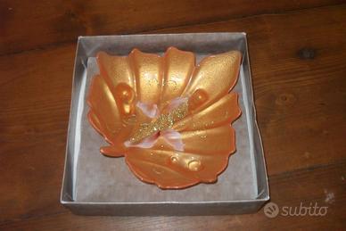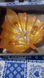 Elegantissima foglia decorata, in vetro di murano. Originale. Con confezione originale.