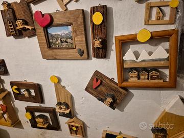 Oggetti d'arredo per ambienti rustici, chalet, baite Souvenir artigianali tipici di zone montane Prezzi dai 5 € ai 13 €