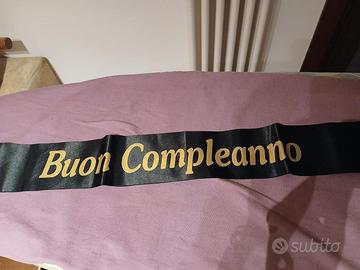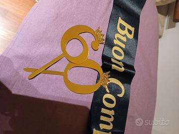 Elegante fascia nera e oro, effetto raso, con scritta 'buon compleanno.' Decorazione per torta o ambiente per celebrare i 60 anni, dorata e glitterata