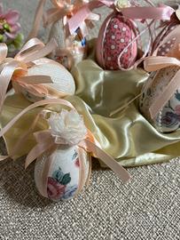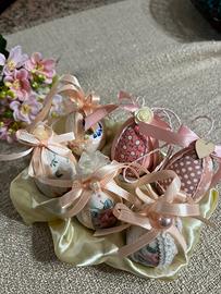 Sei ovetti in polistirolo rivestiti in stoffa realizzati a mano