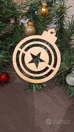 Medaglioni natalizi da appendere in legno inciso a tema Avengers, ideali per l'albero e altre decorazioni.