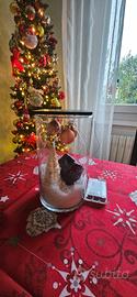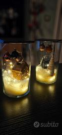 Decoro natalizio formato da 2 vasi di vetro, casetta e albero di natale e kit luci led
