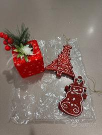 Decorazione natalizia per l'albero o la casa. - Decorazione a forma di pacco regalo rosso con bacche e pigne. Disponibile alla spedizione