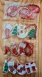 Decorazioni natalizie, segnaposto per la tavola di natale, chiudi pacco per i regali di Natale.