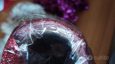 - un rotolo di tessuto con brillantini rossi e stelline, alto 28, non ricordo la lunghezza , ma credo almeno 3 metri, usato un pezzo