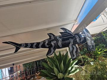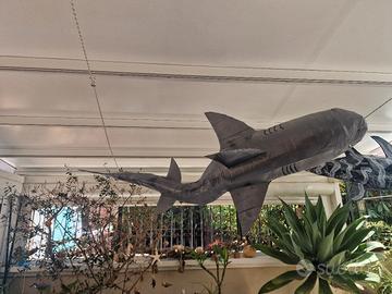 Decorazioni da interno ed esterno (portico coperto) fatte a mano da me con carta, colla e pluriball. Sono dipinti a mano. Si possono appendere al soffitto o a parete, per abbellire cameretta bimbi. Varie misure: tartaruga circa 70 cm, pesci cm 120-150. Manta circa 170 cm.