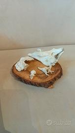 Teschio di topo e parti di mandibole, tra cui coniglio, daino e cinghiale. Trovati in natura, tutti ripuliti con ultrasuoni e rivestiti con spray satinato per decorazioni. Legno non incluso.