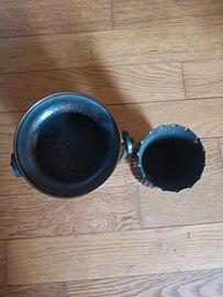 - 1 pentolino/braciere antico, con manici laterali e piedini in ferro battuto, ideale come complemento per il camino o per dare un tocco vintage a qualsiasi ambiente.