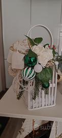 BELLISSIMA GABBIETTA IN LEGNO CON FIORI E FIOCCHI NATALIZI, TEMA VERDE