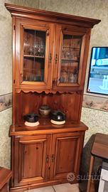 Soggiorno composto da credenza con vetri, angoliera con vetri, tavolo rotondo allungabile con sei sedie, il tutto in ottimo stato, marca Del Tongo. Prezzo trattabile