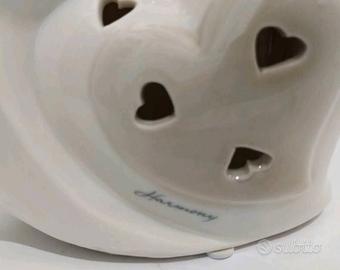 Delicato profumatore d'ambiente a forma di cuore, con una coppia stilizzata e luce interna.