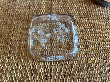 Delizioso contenitore quadrato in vetro trasparente, decorato con motivi floreali bianchi. Un oggetto elegante e versatile, ideale come svuotatasche, portabonbon, portagioie o semplice elemento decorativo in salotto o camera da letto. Periodo: anni ’70 circa Materiale: vetro spesso decorato a serigrafia Condizioni: ottime, senza scheggiature né incrinature Dimensioni: piccola (perfetta per monete, gioielli o caramelle) Un pezzo dallo stile rétro che porta in casa un tocco romantico e senza tempo, perfetto anche come idea regalo per gli amanti del vintage.