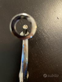 Denocciolatore per ciliegie e olive in acciaio inox. Dimensioni: 19 cm x 2 cm x 5 cm.