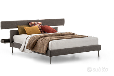 Originale e multifunzionale: un letto con comodini integrati, elementi che contraddistinguono la testata assieme ad un pannello imbottito di maggiore lunghezza. Per un design autentico.