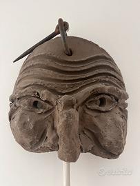Maschera in terracotta raffigurante Pulcinella , realizzata a mano dal noto scultore Lello Esposito. Dimensione 30 cm.