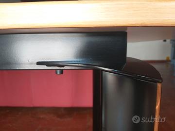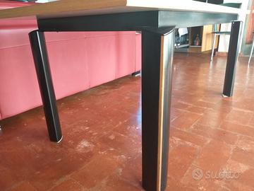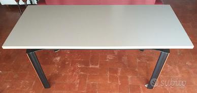 Vendo ad un ottimi prezzo, bellissimo tavolo o scrivania, marchio Estel, di modernariato. La gamba, in legno nero con intarsio in legno chiaro, si innesta su di un montante in metallo sagomato, che fa da sostegno al piano in legno laccato bianco, con profilo di legno chiaro. Il tavolo, solido e ottimamente conservato, presenta solo qualche striscio sul piano. Il tavolo ospita comodamente 6-8 persone, ed è ideale, per il suo design tecnico, anche come spaziosa scrivania. Misure: 180 x 80 x h.73 Il ritiro è a carico esclusivo dell’acquirente. Grazie.