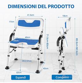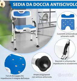 Vendo sedia doccia per anziani pieghevole DEWEL NUOVA, comprata a gennaio 2026, montata e MAI USATA. Spedisco in confezione originale.