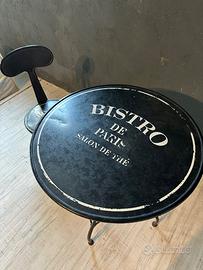 Vendo stupendo set firmato Dialma Brown,composto da tavolo bistro in metallo con misure L71xH75 finitura nero decapè con scritta “bistro de Paris Salon de the” e relativa sedia abbinata stessa finitura…set meraviglioso sempre più raro da trovare,nuovo mai usato..preferirei consegna a mano ma posso anche spedire con corriere espresso.