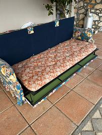 Divano letto rifoderato con elegante fantasia provenzale, perfetto per arredare una seconda casa in campagna o in montagna. Comodo e facile da aprire, offre un ottimo comfort. Inclusi 5 cuscini quadrati 40x40 coordinati nella stessa fantasia. Ottime condizioni generali. Eventualmente, disponibili anche le due poltrone abbinate visibili su separato annuncio.