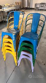Vendo lotto di 10 sedie tipo Tolix nelle colorazioni lilla, giallo, blu e verde da bar