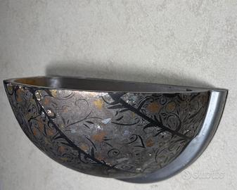 Applique in gesso decorata a mano in stile mandala con foglie d’oro, argento e rame a mezza luna ideale per soggiorni e scale con una luce indiretta per un’illuminazione soffusa con fessura.
