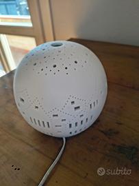 diffusore aromaterapia eletrrico in ceramica bianca con decorazioni traforate.