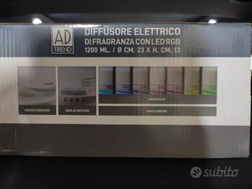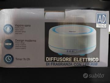 Diffusore elettrico di fragranza con LED RGB. Diffonde profumi, cambia colore durante l'uso. Oggetto di design. Pannello di controllo a sfioro, timer, spegnimento automatico quando l'acqua è terminata.