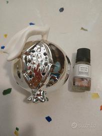 Diffusore per ambienti argentato a forma di melograno, ceramica e argentato, aroma muschio, nuovo con scatola, molto bello