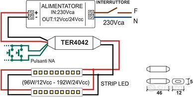 Dimmer Per strip Led Monocolore con memoria di stato 12/24 V Marca Tecnel modello Ter4042