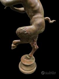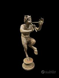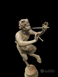 Scultura completamente in bronzo raffigurante fauno con pifferi.